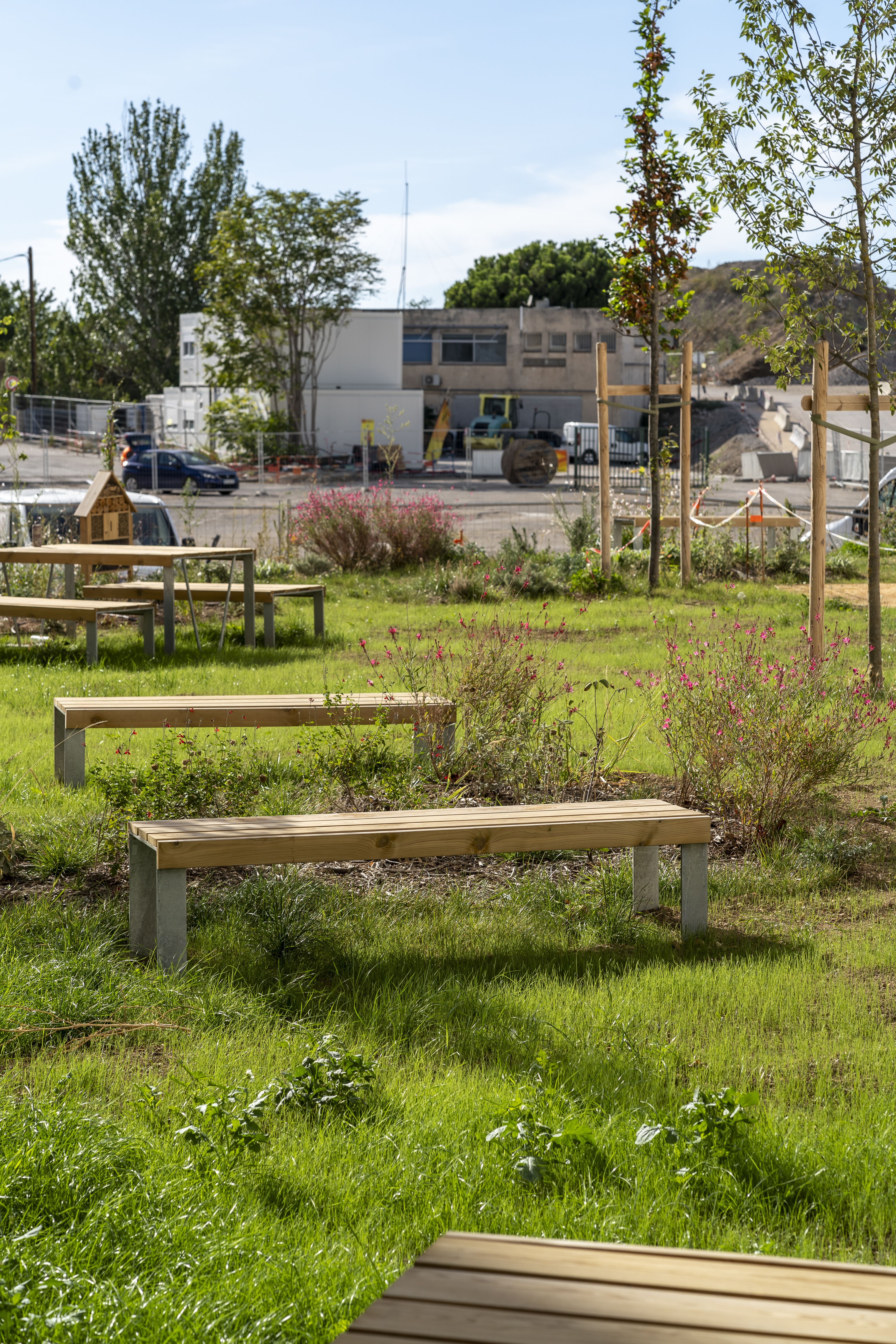 En plein coeur des chantiers de construction des Fabriques, 2 000 m2 ont été consacrés à un jardin d'expérimentations techniques, entre 2020 et 2024. Prévu d'emblée pour être transitoire, cet espace a permis de tester différentes solutions pour aménager des espaces publics plus durables et ainsi de renforcer la résilience de la ville face au changement climatique. Les expérimentations ont essentiellement porté sur la désimperméabilisation des sols, afin de leur rendre leur capacité naturelle d'absorption de l'eau de pluie. Différents types de revêtements ont ainsi été éprouvés en même temps que des associations végétales, des procédés de régénération de la terre et des dispositifs d'arrosage. D’autres expérimentations ont également eu lieu autour des mâts d'éclairage.