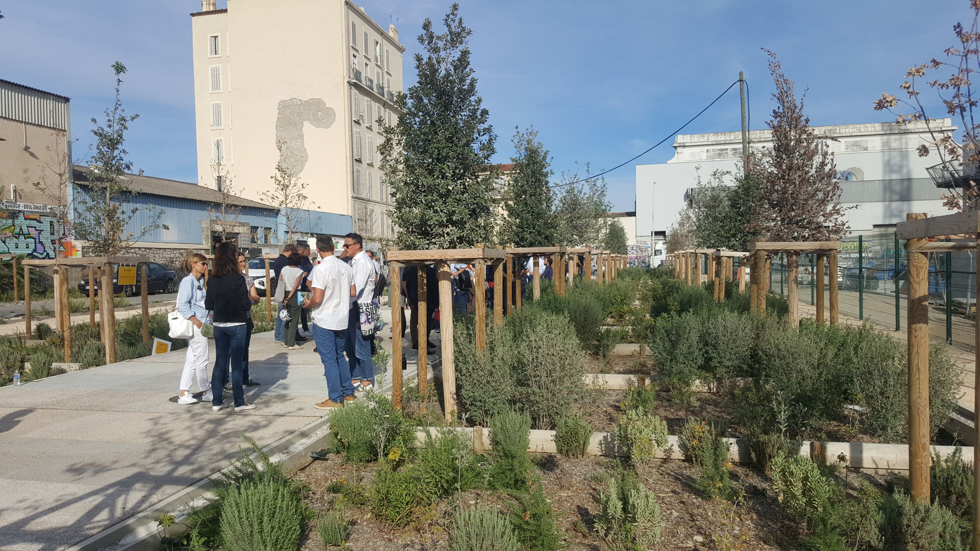 Le jardin a été initié par Euroméditerranée et le groupement de maîtrise d'oeuvre des Fabriques Ilex et Egis, rejoints par Efficacity, l'Institut de recherche et de développement pour la transition énergétique des villes, et le CNRS de Montpellier. Il a ainsi réuni une diversité d'acteurs : entreprises du BTP, chercheurs, collectivités locales, paysagistes, habitants parfois, autour d'un projet, où chacun apporte son expertise tout en apprenant par la pratique. Les services de la Ville de Marseille et de la Métropole Aix-Marseille Provence ont joué un rôle clé en tant que futurs gestionnaires des espaces publics aménagés. Le jardin a fait office de lieu de rencontres où chacun a pu exprimer ses contraintes, ses incertitudes pour avancer en débloquant les freins mentaux : on apprend en testant. Ce cadre de coopération en soi est une innovation. Quels enseignements ont été tirés de cette expérience ? Au moment de son lancement, le jardin revêtait une forte dimension technique et opérationnelle. Il visait principalement à trouver les meilleurs moyens de désimperméabiliser les sols du quartier. Sur ce volet, les expérimentations ont porté des enseignements et des applications concrètes. Mais, derrière cet objectif, le constat est beaucoup plus large. Cet espace a permis à tous les acteurs du projet d'aller beaucoup plus loin dans la démarche. Il a contribué à fonder une culture de l'innovation publique sur le territoire, ouvrant des brèches vers une transition écologique plus large. C'est le propre du champ de l'innovation, par nature, on ne sait pas précisément où on va.